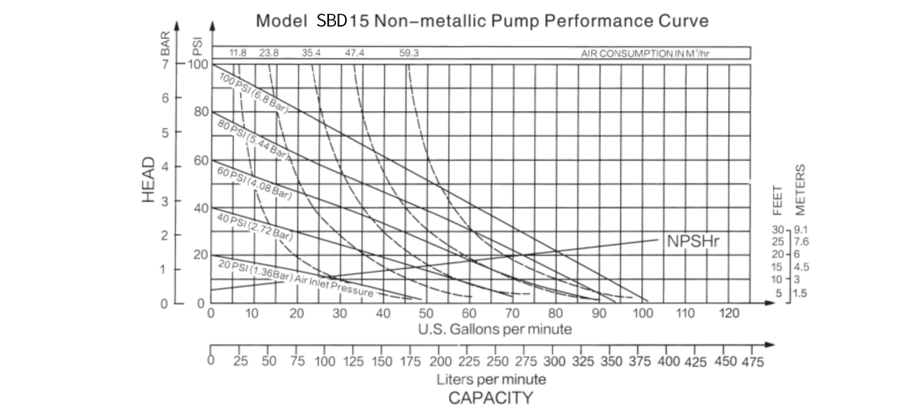 **D15非金属泵性能参数 11/2”( 38mm) **D15 Non-metallic Pump Performance